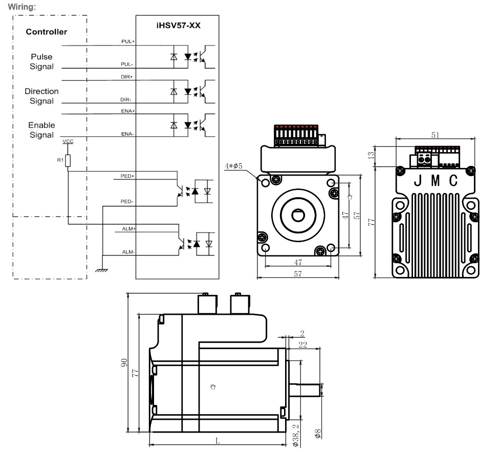 iHSV57-XX Integrated AC Servo Driving Motor is perfectly integrated AC servo drive into servo motor, adopts vector control in DSP chip, features in low cost, full closed loop, all digital, low heat, small vibration, and high response, as well as includes three adjustable feedback loop control modes(postition loop, speed loop, and current loop). iHSV57-XX is a series of stable performance, high cost-effective motion control products.