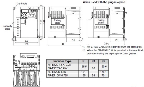 1 The applicable motor capacity indicated is the maximum capacity applicable for use of the Mitsubishi 4-pole standard motor.