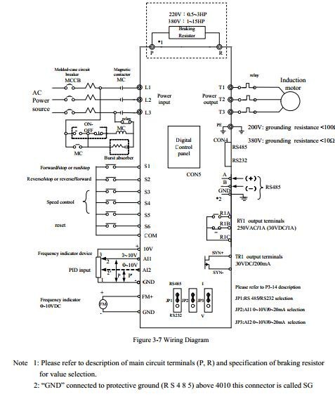 1. External potentiometer0-10V/ 0-20mA 2. Provides up/down controls, speed control or automatic procedure control with multifunctional contacts on the terminal block (TM2) |