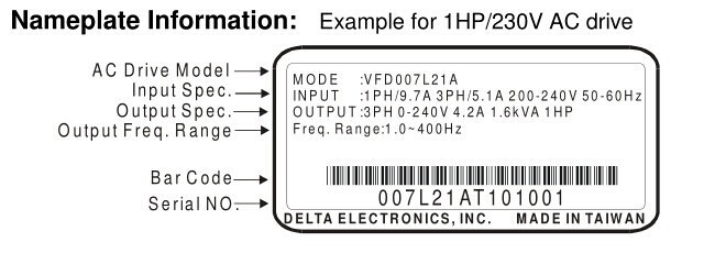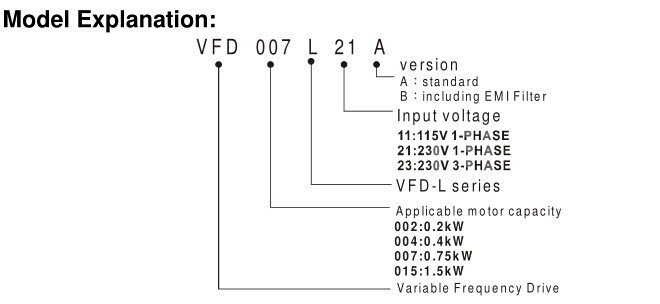 VFD007L21B DELTA VFD-L VFD Inverter Frequency converter 750W 1HP 1PHASE 230V 400hzfor small horsepower motors